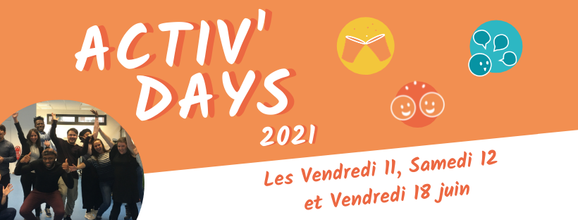 - 16h30-18h : Le clap de fin des Activ’Days : Clap de fin et retour sur les Activ’Days. Cliquez ici pour vous inscrire